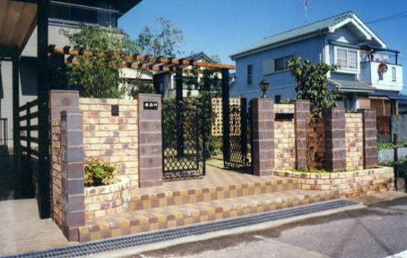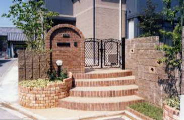 門柱は天然石の一枚石を加工したものです。私がこだわってお願いしました。(平成9年9月完成 菱川邸) | 完成するまで少し不安でしたが、積み上がっていく一つ一つのレンガに美しい織物のような暖かさが感じられ完成を喜んでいます。 平成14年10月完成 望月邸 | |||